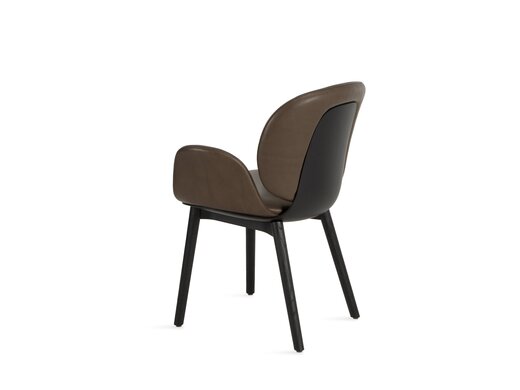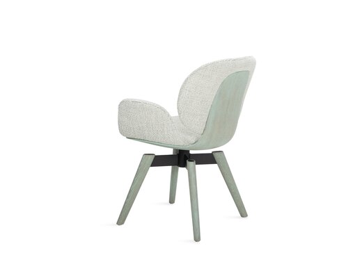 With IVY, Freifrau Manufaktur presents a chair that combines design, craftsmanship and innovation. Designed by Sebastian Herkner, IVY is the first piece in the Freifrau collection to feature a visible wooden shell. It’s soft, organic shape evokes the image of a blossom, lending the chair a serene yet elegant expression. The choice of material is what truly sets IVY apart: moulded wood wool forms a strong yet flexible core, while premium oak veneer gives the surface a refined finish. The result is a three-dimensional shell that unites sculptural elegance with supple, welcoming comfort. Thanks to its modular construction, IVY is exceptionally versatile: a choice of bases, optional armrests and fabric or leather upholstery allows for countless configurations, making this chair equally at home in private living spaces, fine dining settings and contract interiors.
